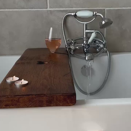 Transform your bath time into a luxury experience with this beautifully handcrafted rustic bath tray. Made from reclaimed wood, each piece is completely unique, full of character, and finished with care to enhance its natural charm. Perfect for gifting or treating yourself, this bath caddy brings both style and function to your bathroom. Whether you're reading a book, sipping wine, or enjoying a spa night, this tray is the ideal companion.